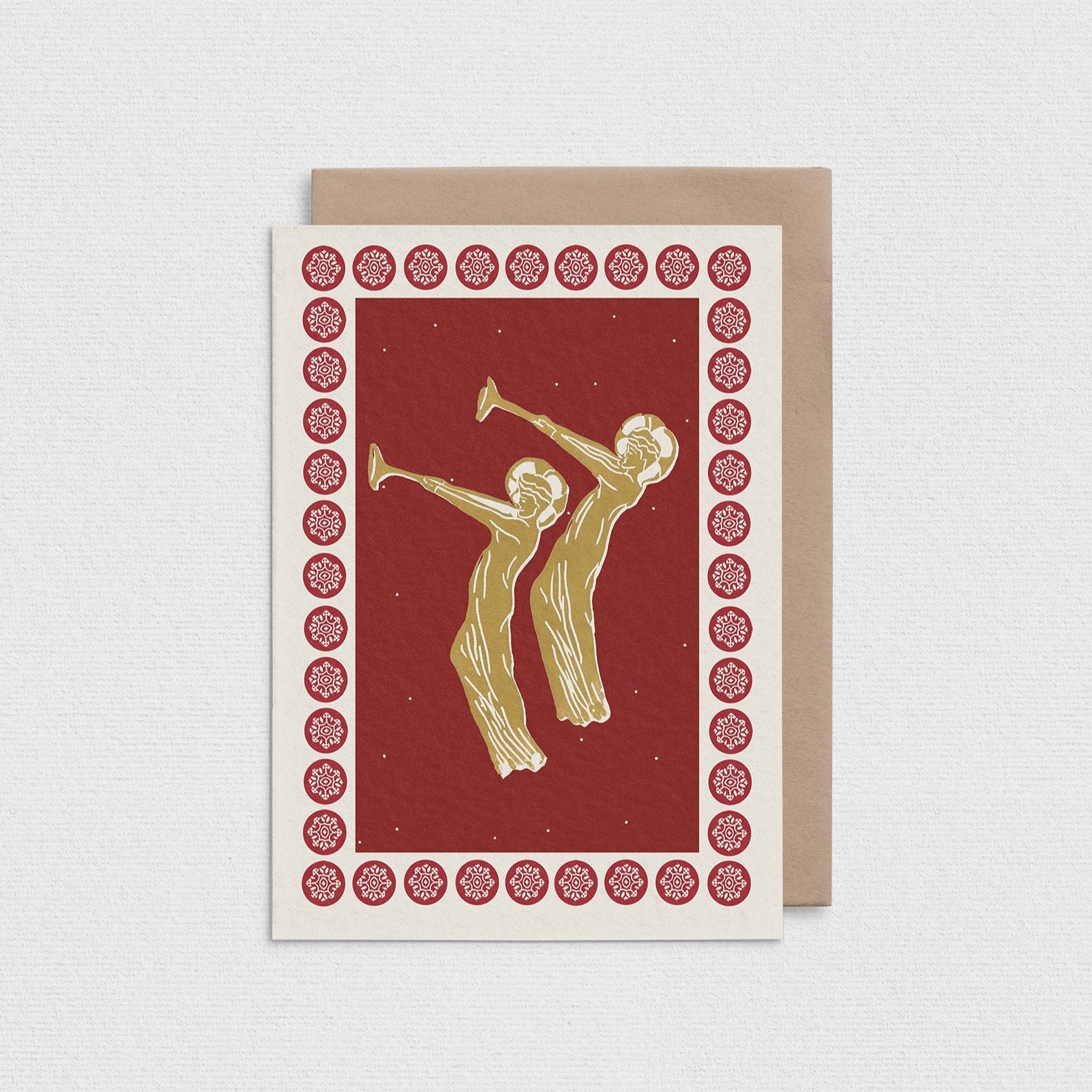 This design has been reproduced from an original linocut print. Perfect for celebrating Christmas and New Year.