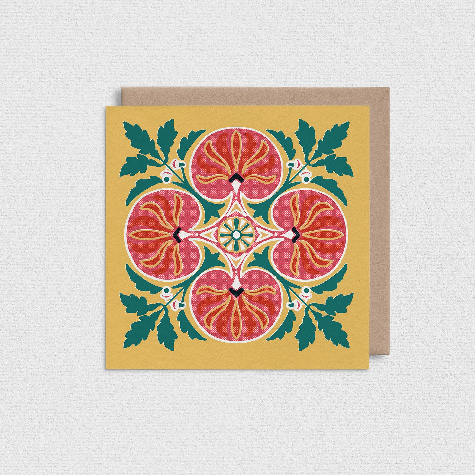 - 125x125mm square card with kraft envelope