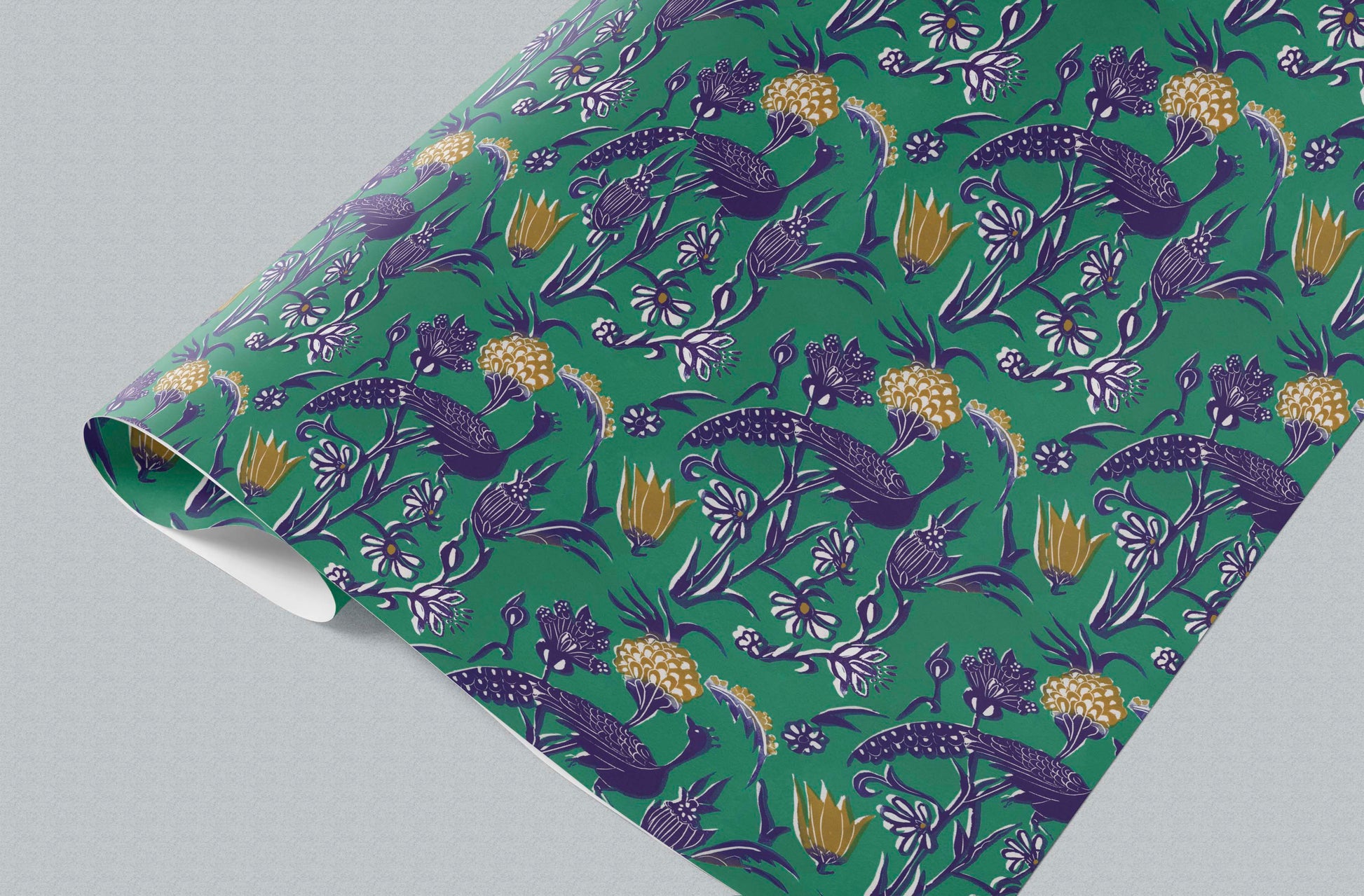 Made from one of our original linocut prints. Peacocks have represented beauty, rebirth and wealth in art since ancient times. Our wrapping paper has been digitally printed from our original design.