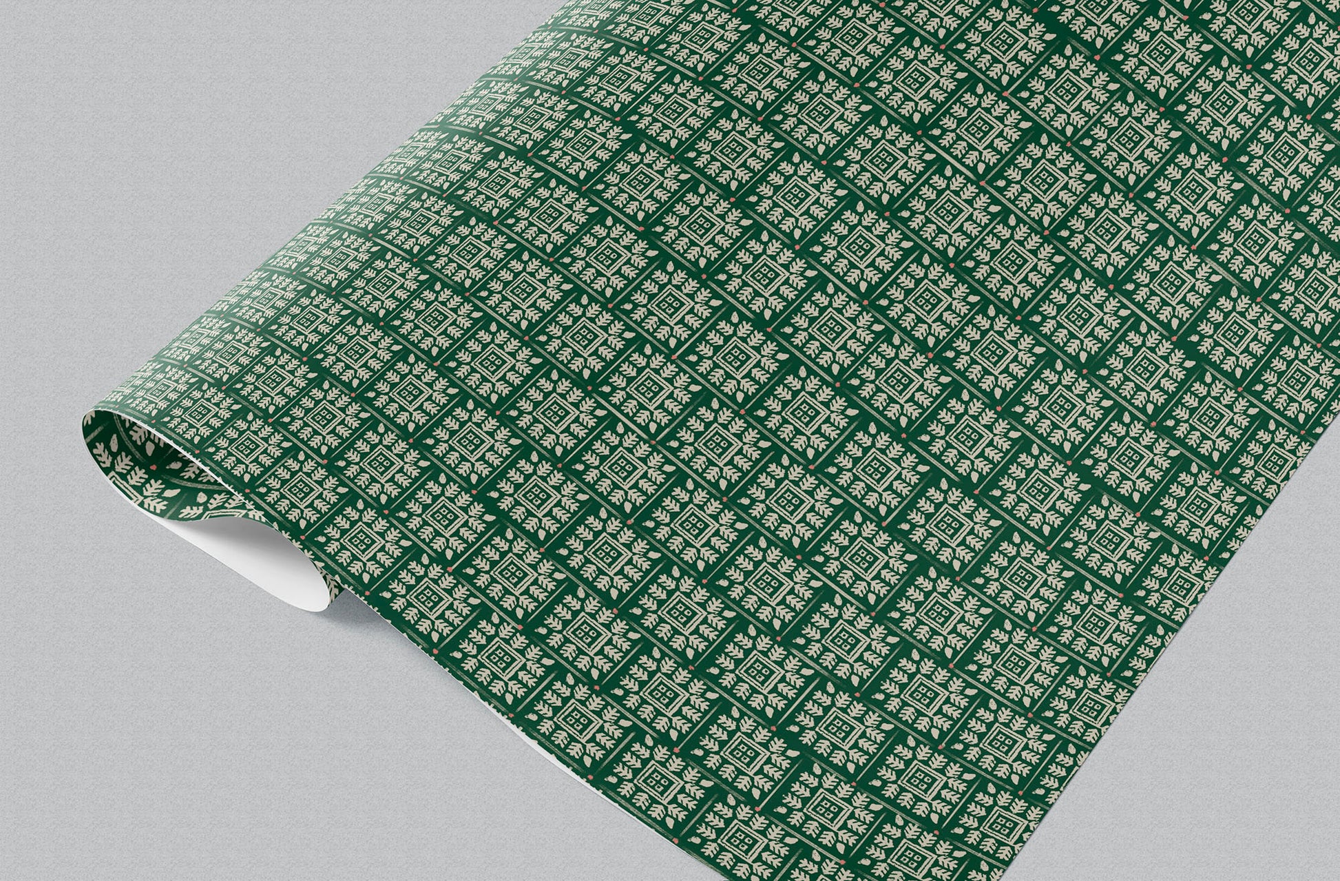 Made using wood blocks collected over many years with some going back as far as the 1930's. This particular design represents the fir tree found in the northern part of Pakistan. Our wrapping paper has been digitally printed from our original design.