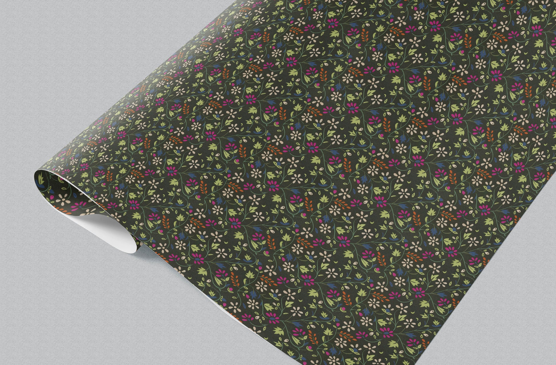 Inspired by vintage fabric, this design was originally hand painted with gouache on paper before being reproduced digitally as a wrapping paper.