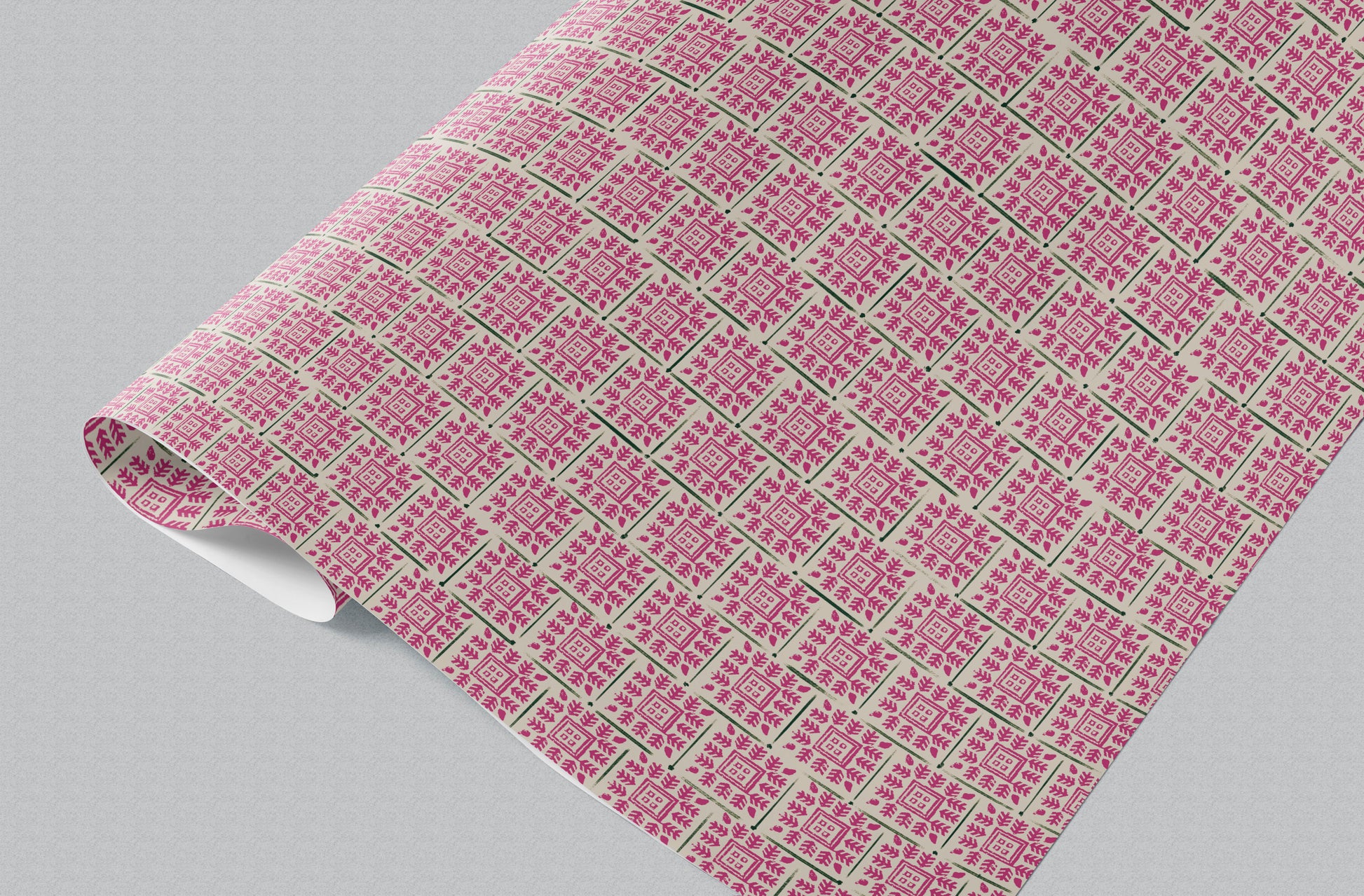 Made using wood blocks collected over many years with some going back as far as the 1930's. This particular design represents the fir tree found in the northern part of Pakistan. Our wrapping paper has been digitally printed from our original design.